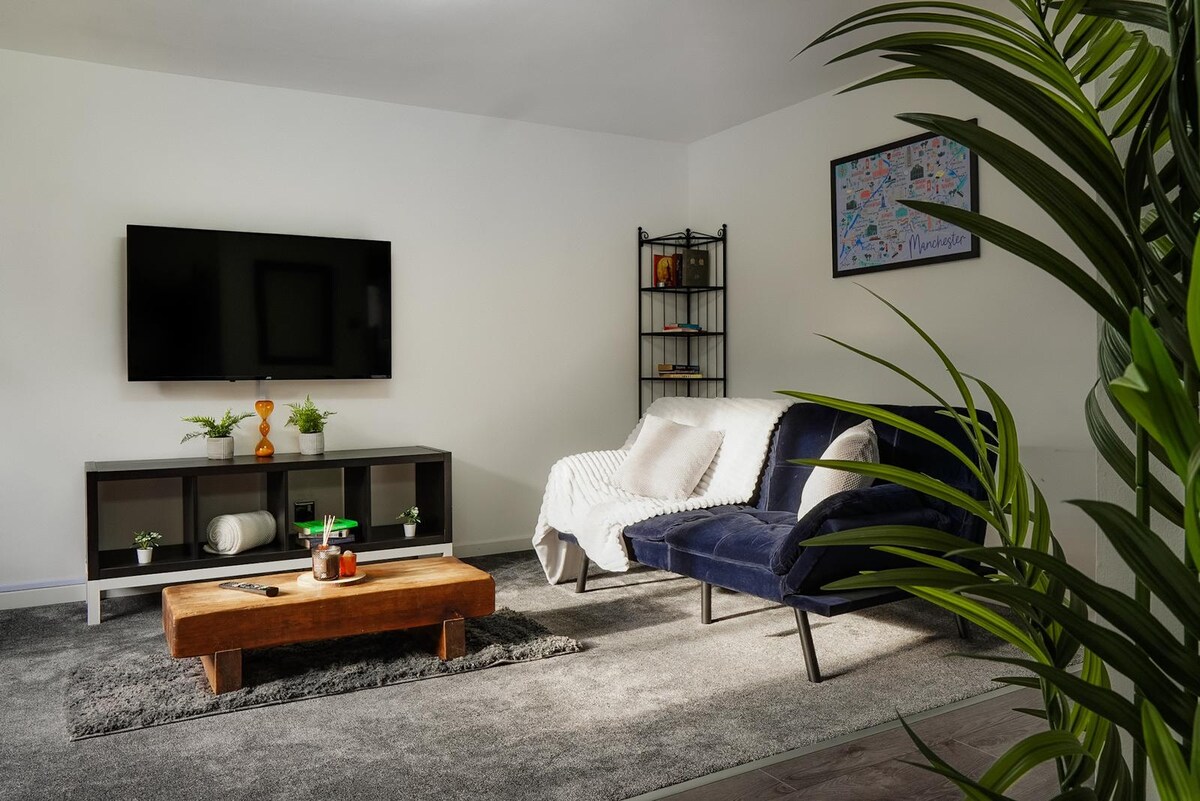 Prime location for families, groups and couples. Walk to: ⚽ Old Trafford ⛴️ Salford Quays (0.5mi) 🎥 MediaCity 🛍️ Lowry Outlet Mall 🍽️ Bars & restaurants 🚋 Anchorage tram stop (0.1mi) Metro/Tram Access: 🚆 Manchester City Centre in 10 mins by tram or 5 mins by Uber 🎤 Co-Op Live is 25 mins by tram 🎪 Heaton Park is 30 mins by tram or 20 mins by Uber Enjoy: 🅿️ Free secure parking 📶 Fast WiFi 🛎️ 24/7 on-site security Perfect for: ❤️ Couples 👨👩👧 Families 💼 Business stays