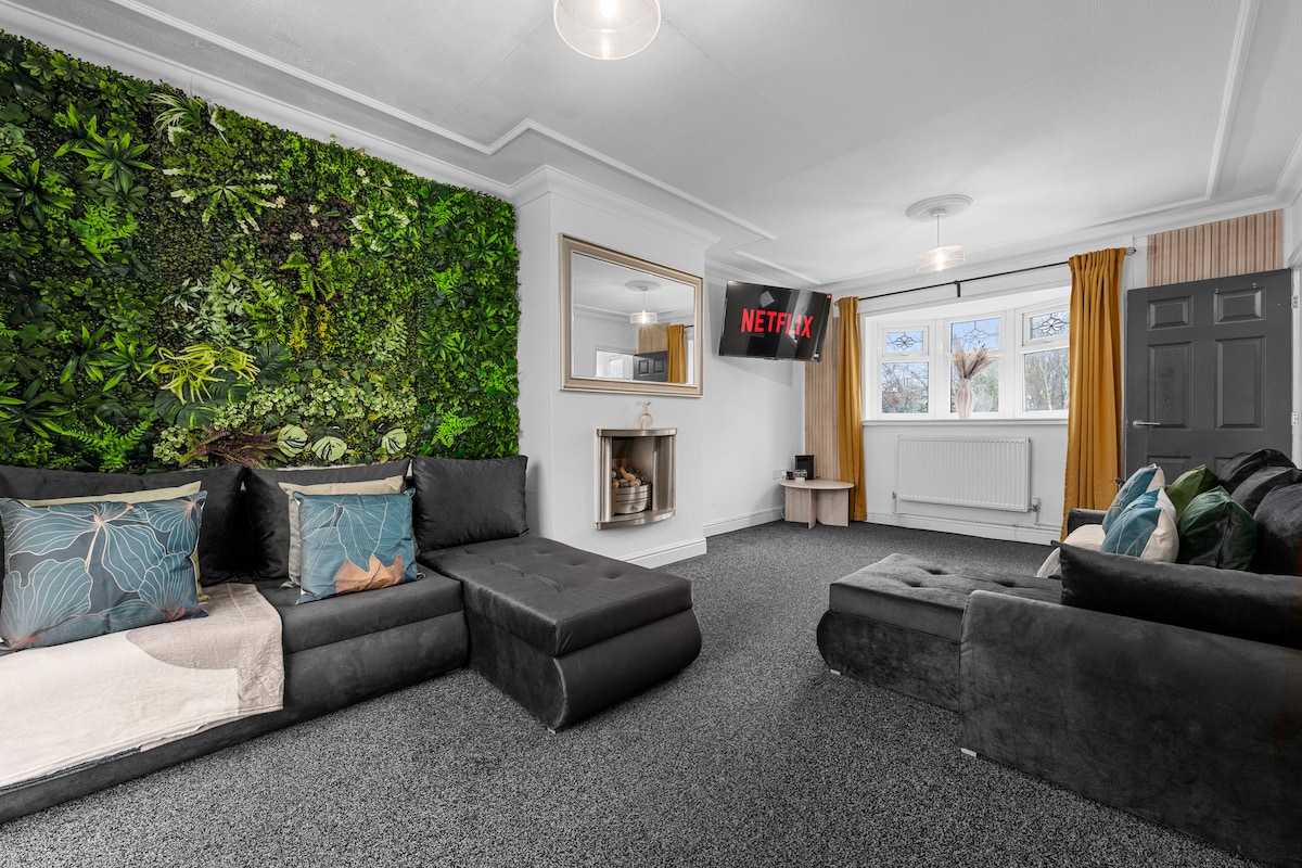 Social Media: 'Manchester Hidden Gem' for direct booking Luxury Private Retreat – Ultimate WOW Factor! Step into indulgence at this stunning gated escape, where elegance meets fun. Unwind in the hot tub, enjoy movie nights in one of two stylish lounges, or challenge friends in the games room. Cook and entertain in the sleek open-plan kitchen, all set in beautifully secluded surroundings. A five-star experience from the moment you arrive. Extremely close to Manchester Airport & City Centre.