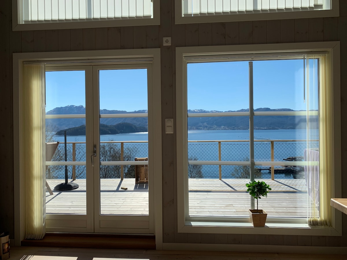 Velkommen til vår nydelige hytte rett ved sjøen! Her får du den ultimate kombinasjon av fjord og fjell! I hytta kan du nyte dagene med utsikt utover fjorden, bade på egen privat sandstrand og kai. Du kan også leie 2 stk Sup brett og fiskestenger. Hytta er høyt moderne med alle fasiliteter i rolige omgivelser omgitt av naturen på alle kanter! Lag god mat, nyt et glass vin og la roen senke seg!