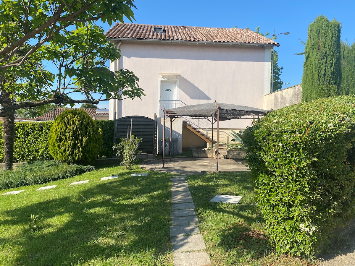 Idéalement situé au coeur des parcs, à quelques minutes à pied du centre ville et de la gare, vous bénéficierez à la fois du calme et de la proximité des restaurants, commerces, etc. Ce joli studio lumineux de 30m2, dans maison des propriétaires, climatisé, avec terrasse privative, cuisine indépendante, bien équipée, avec garage à vélo sécurisé, et possibilité de stationnement gratuit dans la rue, sera votre séduisant pied à terre pour vous qui souhaitez découvrir Valence et sa région.