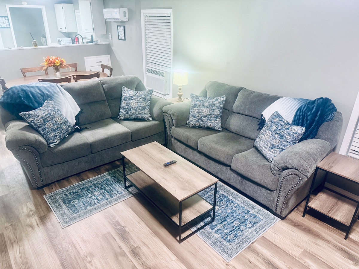 This Loft in Gadsden offers prime downtown lodging with access to dining and shopping. This mid-century modern loft features an open-concept space, a master suite with a queen bed, 2 custom tile showers, a walk-in closet & free laundry. The 2nd bedroom listed is actually the living room since it has a full bath. We have a queen air Mattress and 2 comfy beds that fold out. The kitchen is fully equipped with stainless steel appliances and granite countertops. This place is close to everything.