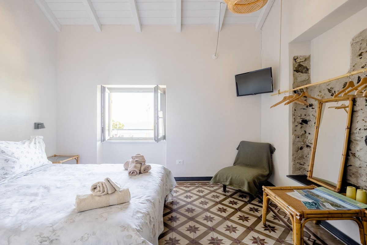 Piccola camera situata al primo piano su sentiero pedonale, Via Serra, dotata di servizi igienici privati, wifi gratuito e bellissima vista mare, ideale per una coppia. All'interno è presente una caraffa elettrica per acqua calda, tv, asciugacapelli e ventilatore. Durante il soggiorno nella camera, su richiesta vengono forniti gratuitamente i teli mare.