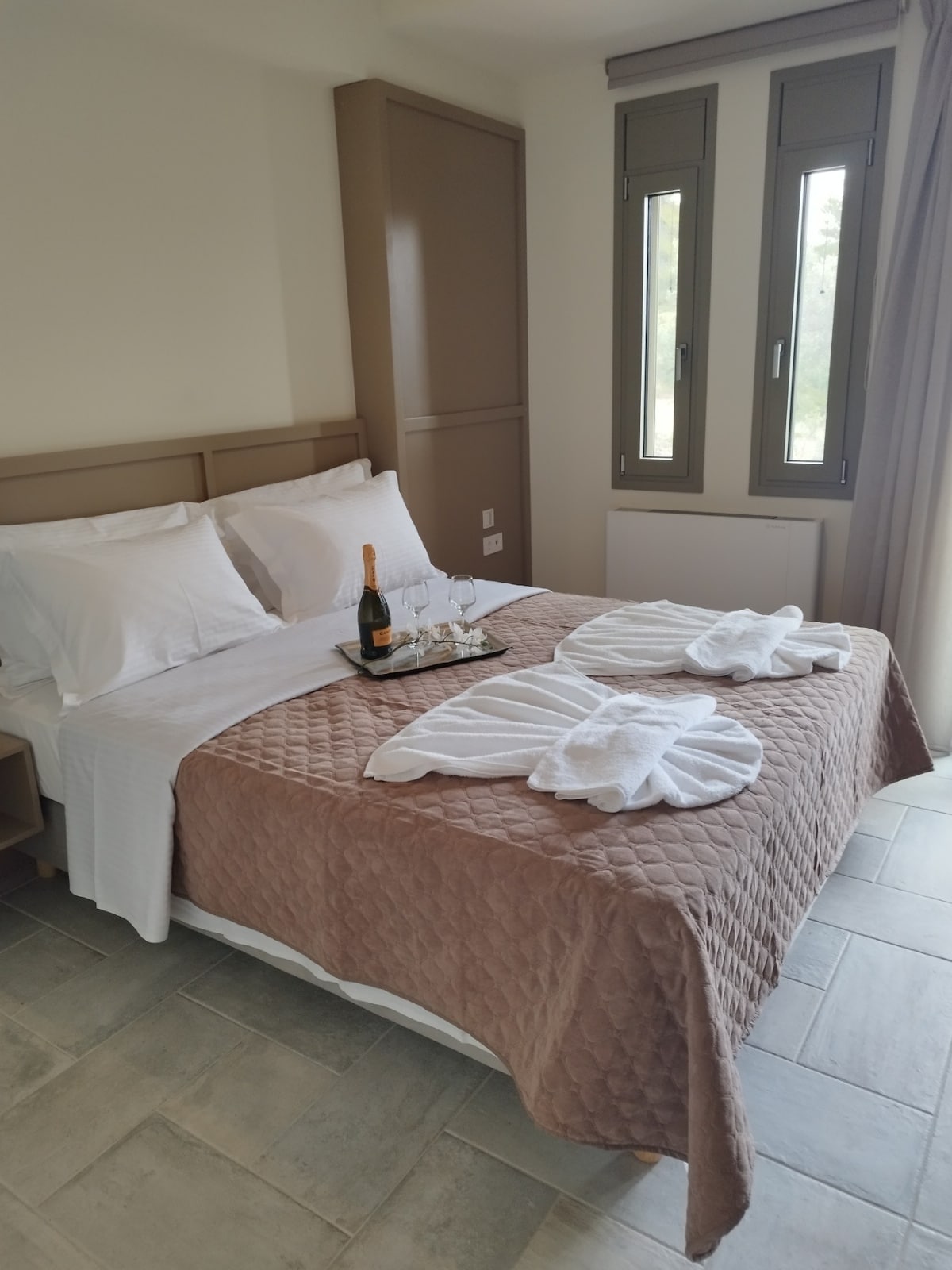 The Marisini studio, consists of a double bed, is a classic hotel room, without a kitchenette, has a refrigerator and all the necessary utensils to make a coffee or tea, air conditioner, television, hair dryer, has a private balcony overlooking the garden and the sea, we are five minutes' walk from Batsiou square where all the shops, restaurants, coffee bars, and the sea are.