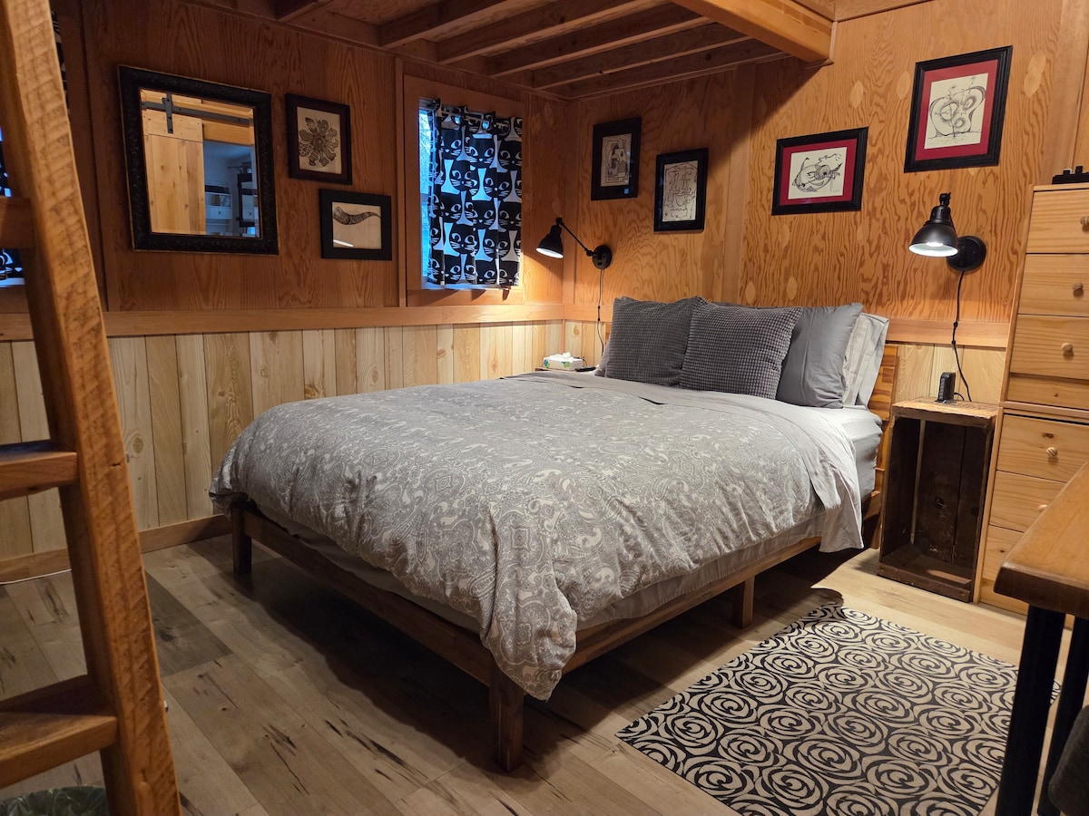 The Lucky 13 Studio is a newly renovated, modern space that is conveniently located near the heart of the city of Eugene! This 230 square foot studio/tiny home comfortably sleeps 1 or 2 guests and is close to restaurants, shops, parks and the University of Oregon. It is within walking distance to several wonderful eateries including; Laughing Planet, Falling Sky Delicatessen, Sweet Life and Tacovore . You'll find our studio to be comfortable and cozy with all the amenities you'll need!