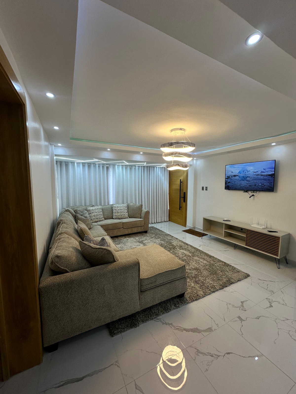 Diviértete Disfruta de una estancia acogedora y moderna en este apartamento de 2 habitaciones , y dos baños , ideal para familias, parejas o viajes de trabajo. Con una sala elegante, iluminación cálida, decoración con estilo y todas las comodidades necesarias, este espacio es perfecto para descansar después de un día en la ciudad. • Excelente ubicación cerca de comercios y transporte • A solo 20 minutos del Aeropuerto Internacional de las Américas con toda la familia .