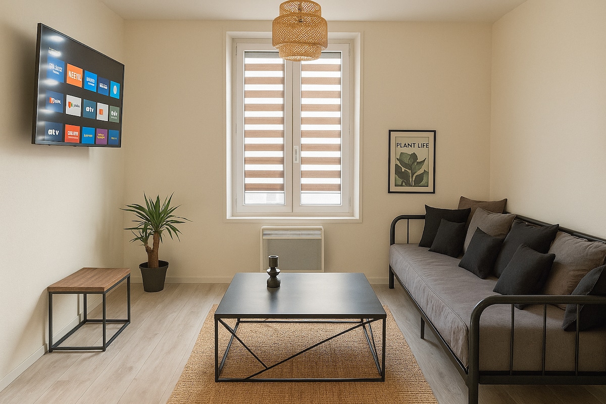 Welcome to Nancy BnB thermal 1! Located on the raised first floor, this modern apartment is designed and equipped to offer you all the comfort you need. 🚅The apartment is less than a 15-minute walk from the train station and less than a 10-minute walk from the new thermal center. 🗽 What's more, it's a 20-minute walk from Place Stanislas. We look forward to welcoming you!