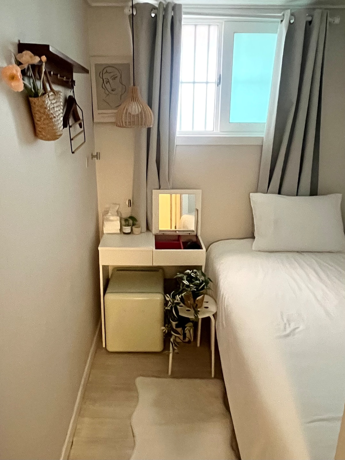 - 房间7坪,床135*200,书桌1300*600,可以保管行李 - 具备可办公、可做饭的简单餐具,智能电视 50 英寸 - Wifi, 大衣柜, 大冰箱, 洗衣机, 晾衣架, 吹风机, 毛巾, 纸巾, 水 收费停车 洗发水、沐浴露、护发素、香皂 - 从仁川机场到宿舍正门乘坐机场巴士时56分钟(包括6分钟步行) - 从宿舍可以走着去的地方 大创(6分钟),OLIVE YOUNG(3分钟),时代广场(3分钟),汗蒸房(6分钟) -从宿舍坐地铁去的地方 (附近有 1 号线永登浦站、2 号线文来站、5 号线永登浦市场站) 东大门 DDP(41 分钟),汝矣岛汉江公园(21 分钟),清溪川(41 分钟),景福宫(39 分钟) 弘益大学入口站(24分钟),北村韩屋村(41分钟),明洞(36分钟),圣水洞(47分钟) 文来洞(12分钟),永登浦站是KTX停车站,去釜山等地方很方便。 清晨感受着从窗户照进来的温暖阳光 晚上坐在房间的窗边享受时代广场的夜景
