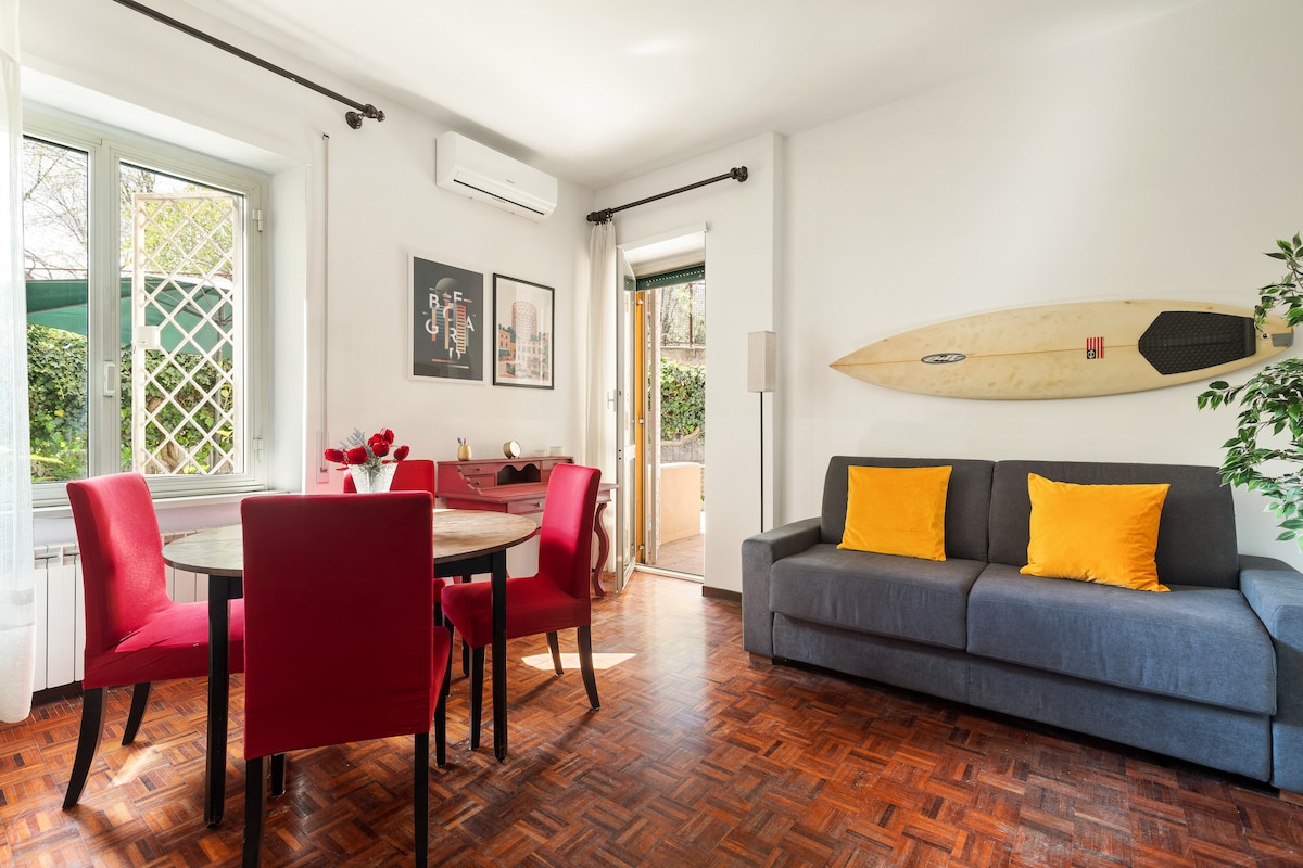Ground floor holiday home, 40 square meters situated on a road full of restaurants and markets. Possibility of Self Check-in. 300 meters from the Metro (Subway) and 100 from the tram. With its connections, it is easy to reach the main tourist sites such as the Colosseum, the Vatican and the Trevi Fountain. Equipped with all comforts, renovated and thought out down to the smallest detail. Full kitchen, dishwasher, microwave, oven, bathtub, shower, air conditioning, 2 TVs! Nothing is missing!