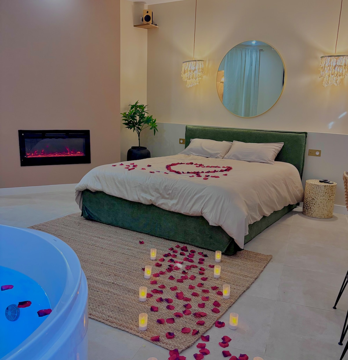 带按摩浴缸的电影套房,配备投影仪,可享受浪漫夜晚体验