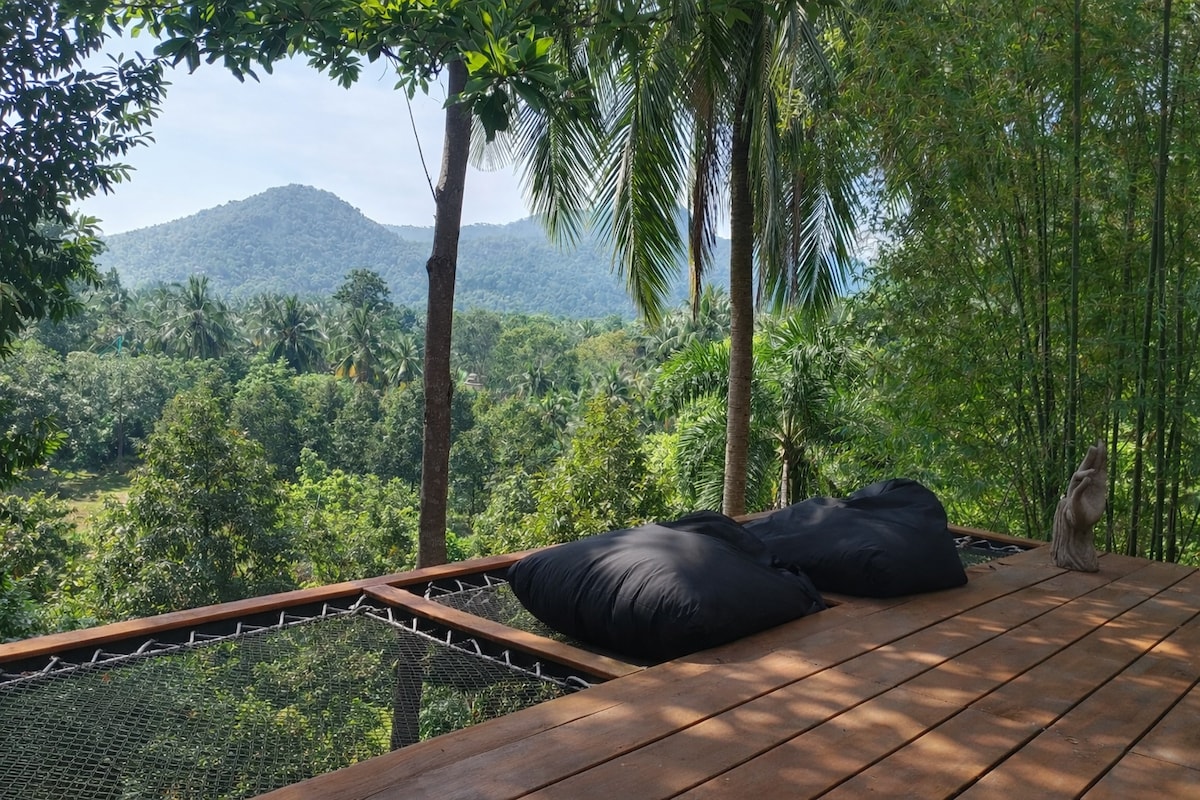 A private jungle escape designed for couples seeking something truly unique and unforgettable Akai House blends Asian art, open-air living and total immersion in nature — with no neighbors around and stunning mountain views. Enjoy an open-air bathtub, cozy movie nights with a retro projector, and a peaceful jungle vibe just minutes away from everything.