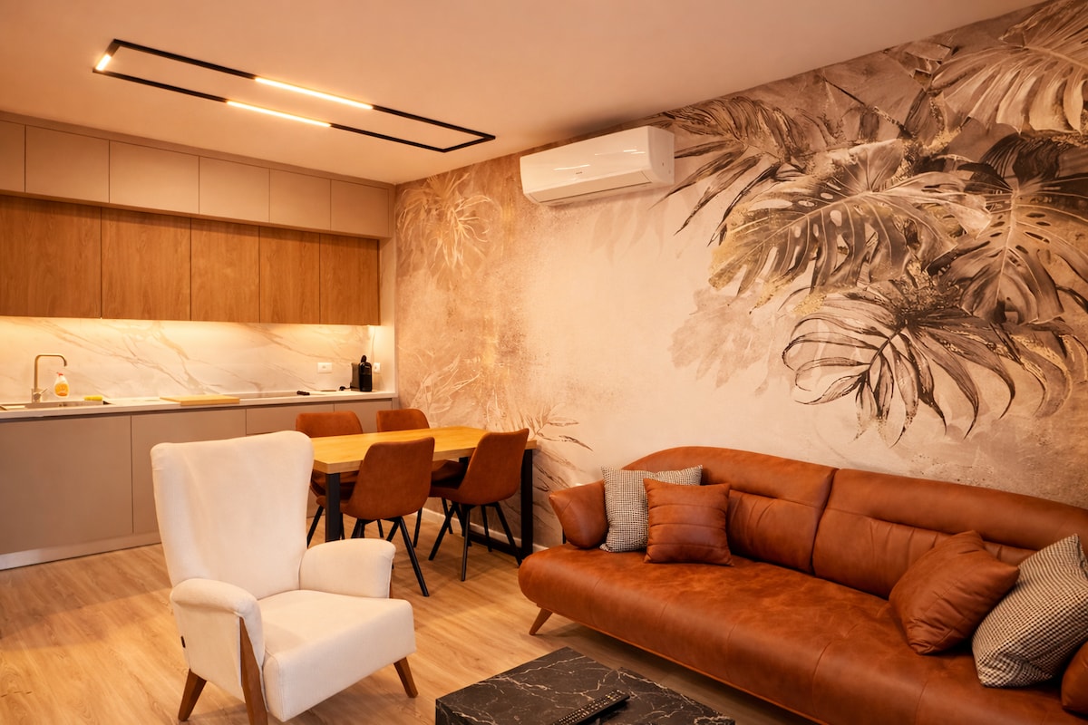 Some apartments are where you set down your bags. Others are where you set down your soul. This hidden Gem is the second. Nestled in the heart of Casablanca’s most vibrant neighborhood — this apartment was designed as an object of desire: an emerald green zellige arch, a raw solid wood coffee table, handcrafted pottery, a blush-beige sofa, and that light that fills every corner. The Morocco you’ve been dreaming of, in contemporary design. Boulevard Zerktouni, steps from the Twin Towers.