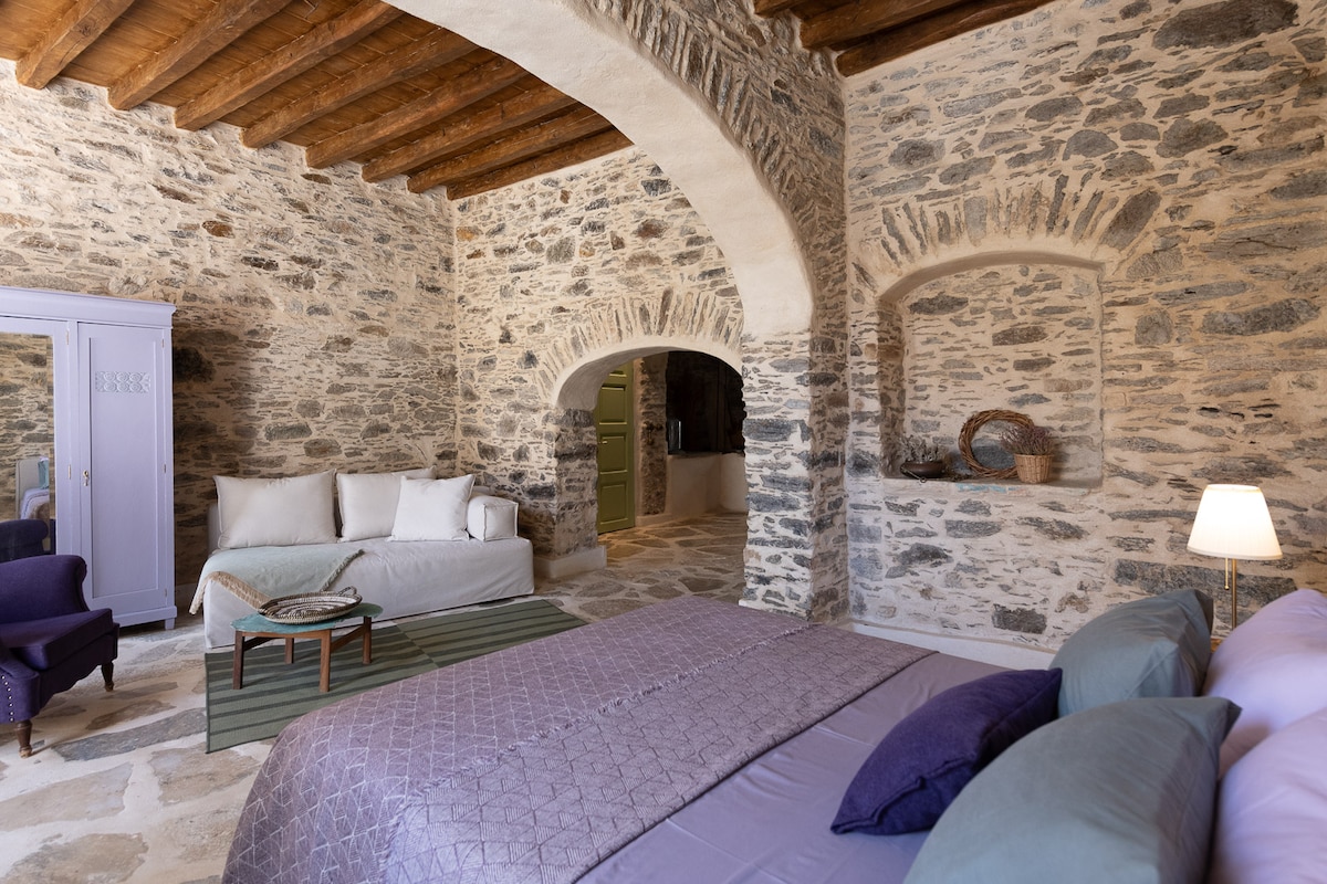 The ground-floor studio apartment is part of a listed neoclassical townhouse, build in 1870, in the heart of Ermoupolis. Originally serving as the storage room and service quarters, it has been carefully restored to retain its original architecture while offering a comfortable stay. The layout is open and functional, offering: ✔ a working kitchen with everything needed for cooking meals ✔ a bathroom with a shower ✔ a cozy sleeping area that blends old and new