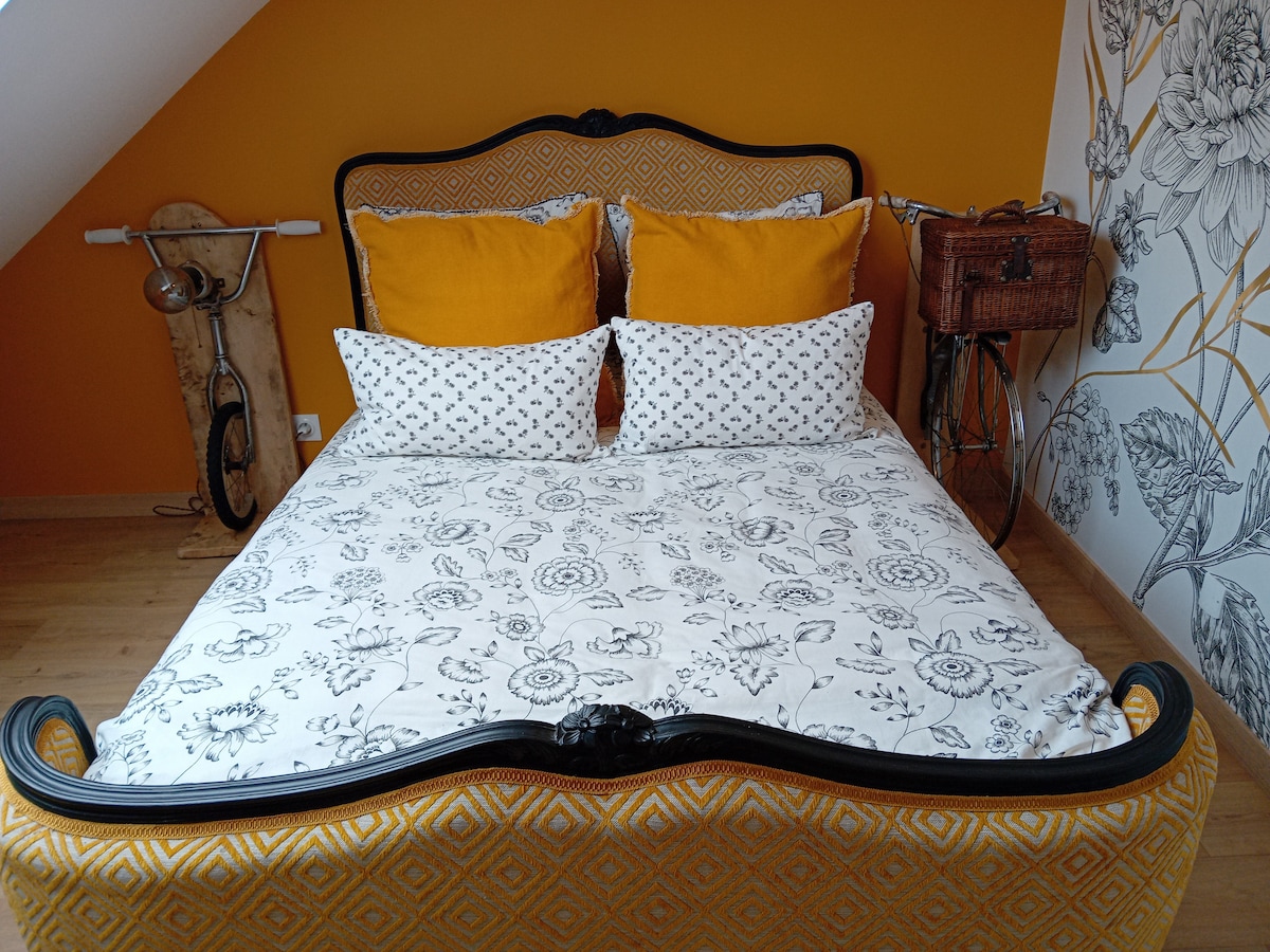 Bienvenue dans notre chambre d'hôte décorée sur le thème du voyage à vélo ! moins de 10 minutes à pied de la gare, profitez d’un cadre original et reposant. Après vos balades, Détendez-vous dans notre jacuzzi privatif et notre magnifique jardin. Pour votre confort, un parking gratuit se trouve juste devant la maison. Idéal pour les amateurs de cyclisme ou les voyageurs en quête de détente, notre maison vous promet un séjour unique et agréable au cœur de la nature en ville.
