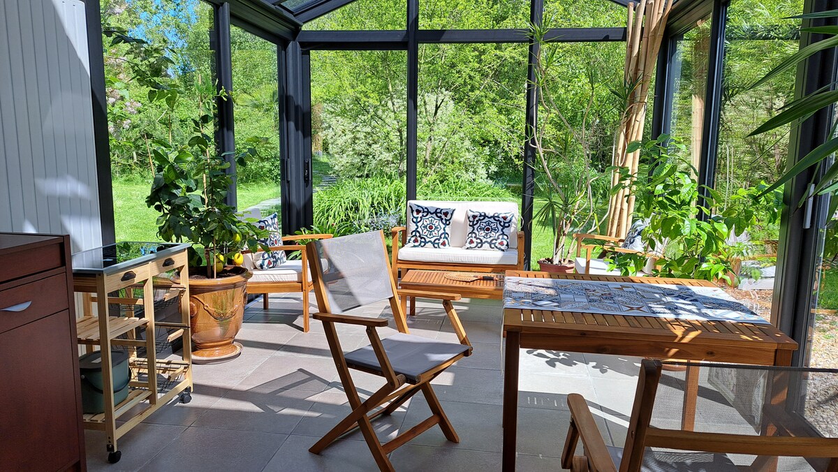 Un havre de paix en pleine campagne à 20 km de Chartres et en bordure de forêt. La maison se situe dans un beau jardin entièrement clos, des dépendances et un grand préau pour les déjeuners en plein air et barbecue. Seront à votre disposition : table de Ping Pong, jaccuzy chauffé ( sauf de fin novembre à mars) vélos et… Nombreuses activités : promenade en forêt, golfe, ball trap, etc. Atelier de cuisine sur demande. Départ Horaire prolongé pendant le WE. ( vendredi 17 h à dimanche soir)