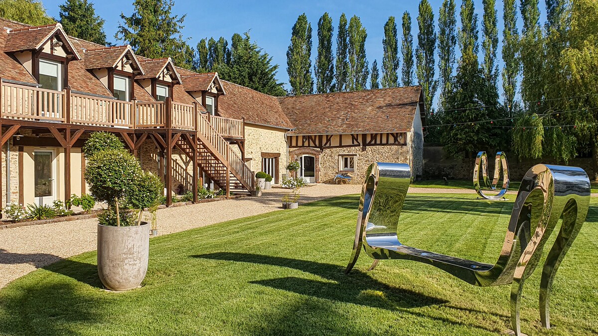 🌿 Nestled in an 18th-century farmhouse just 15 km from the A11, our 70 m² property welcomes up to 4 guests in an authentic, peaceful, and refined setting, blending historic charm with modern comfort. Facing south, the location offers stunning sunsets over a nearby stable. Wake up to birdsong, take in the calming scenery, and breathe in the fresh country air for a truly rejuvenating escape.