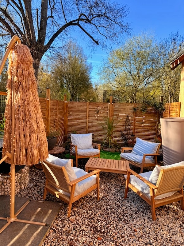 Un dépaysement total à 1h de Paris, entre Chartres et Maintenon. Voiture indispensable , la gare d'Epernon est à 8km les courses à 4km Le cottage est indépendant dans jardin spacieux, tout en bois, avec terrasse au bord de l'eau. Logement confortable bien isolé et chauffé ,avec lit double en140, salle bain, toilettes et coin cuisine bien équipé Un coin de paradis classé 2 étoiles. Si vous n'avez pas de voiture mais des vélos vous pouvez venir en train avec vos vélos, jusqu'à Maintenon.