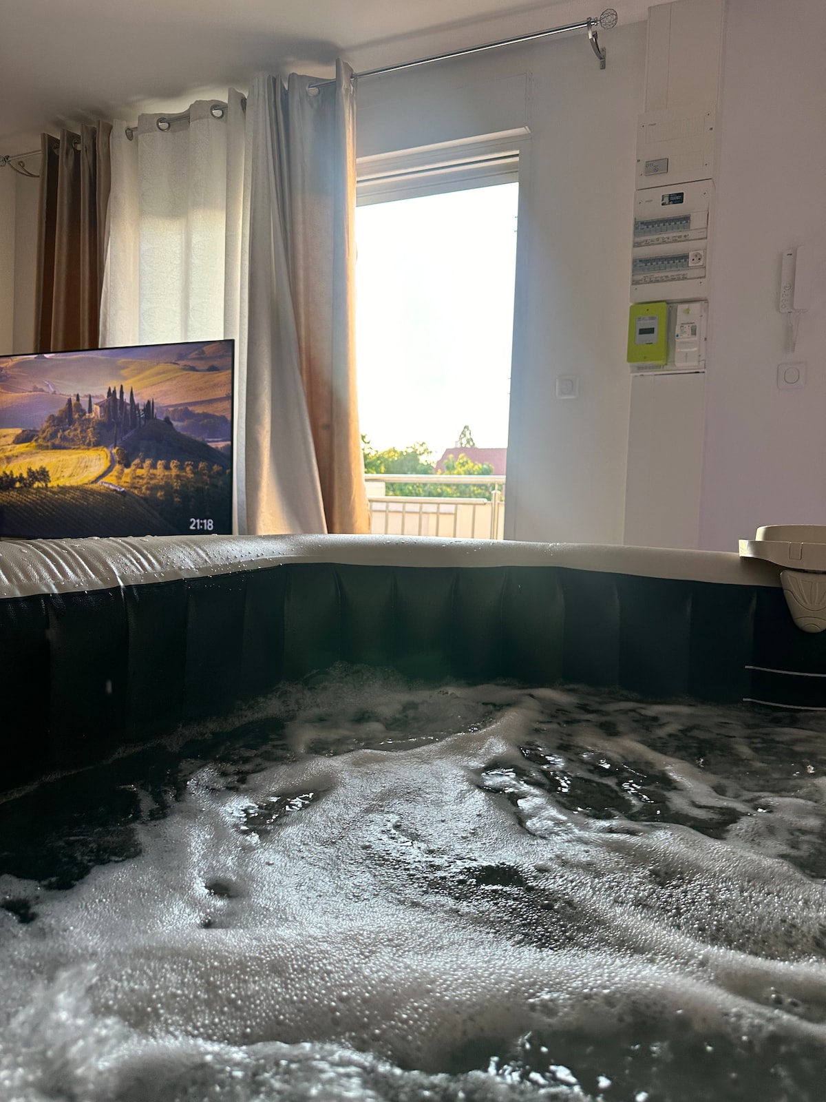 Nous avons le plaisir de vous présenter, en exclusivité, notre nouvel APPARTEMENT JACUZZI de plus de 54 m2 situé à Freneuse (78) Cette nouvelle construction équipée à neuf et profitez de cet espace avec un jacuzzi situé dans une résidence sécurisée sous surveillance caméra. Votre place de parking se trouve à un mètre de votre votre Appartement Jacuzzi Close : aucune visite n’est autorisé dans le logement en dehors des personnes qui ont réservé