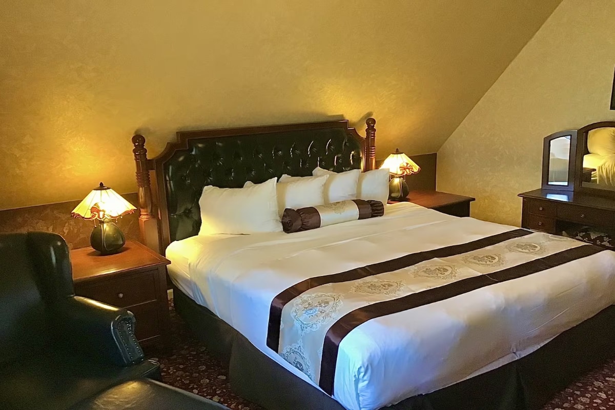 Located steps from Old Town and the iconic Carson Mansion, this historic inn blends charm with convenience. This room features a king bed and timeless design details for a peaceful stay. A great home base for exploring Eureka’s highlights.