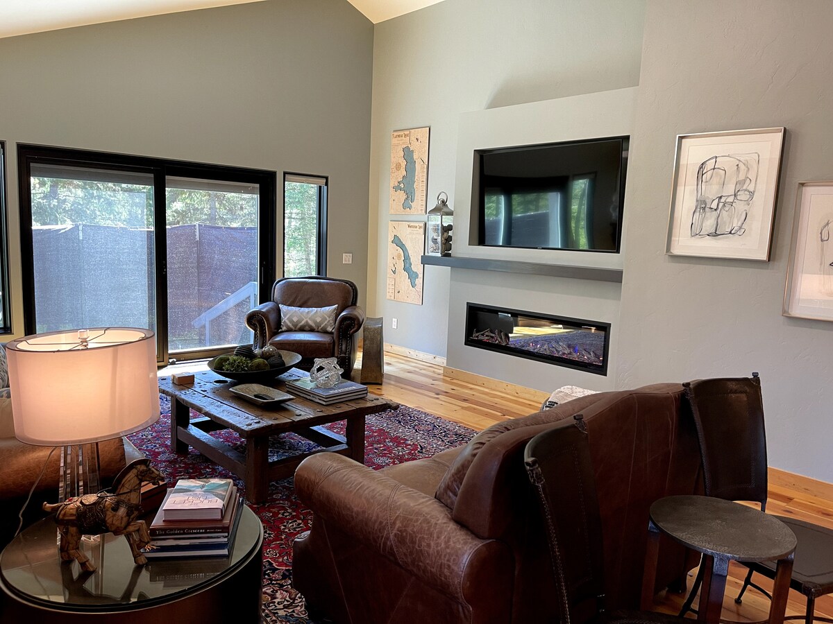 Retreat to a peaceful modern space after you spend an exciting day exploring Glacier Park or skiing Whitefish Mountain. The Mountain House is perfectly located 6 minutes from the airport, 15 min from downtown Whitefish, and 33 min from West Glacier. Relax on the patio with a gorgeous view of the Rocky Mountains. Enjoy a fireplace and a shared hot tub space as you make the most of your visit to the Flathead Valley. Traveling with friends? This property offers another cabin. Message for details.