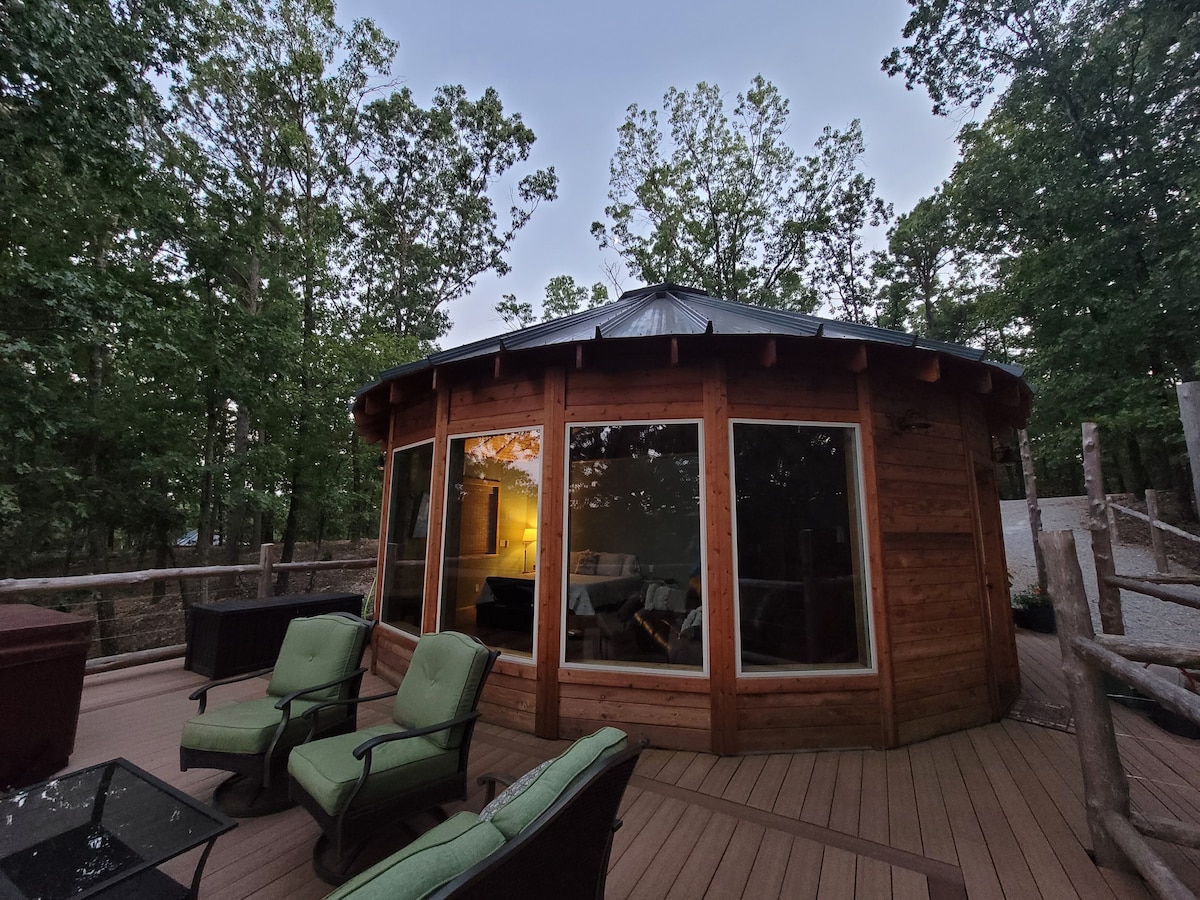 White Oak Yurt is a luxury, cedar wood yurt built in 2019. It's the perfect place to unwind and enjoy some quiet time. You can relax on your private deck with a hot tub surrounded by nature. There's a large walk-in shower, king size Purple Mattress, and a most everything needed to cook a meal. If dining out or sightseeing is on the plans, we are located just minutes from historic Eureka Springs with lots. Beaver Lake and the White River are also very close! Come relax with us!