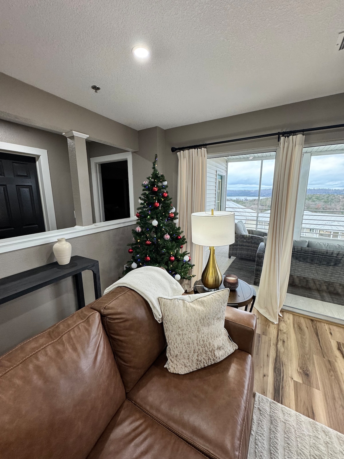 Kick back and relax in this stylish space built in 2022. Has one queen bed. We added a hot tub! The space has tall ceilings and a kitchenette with a few mini appliances. Enjoy lake view in the winter from the patio where you can hear the boats nearby and enjoy a fire pit and patio seating. The lake is a short walk through the woods on our rustic trail if you are adventurous. Laundry machines available if you get dirty. Short drive to the freeway and world class bike trails.