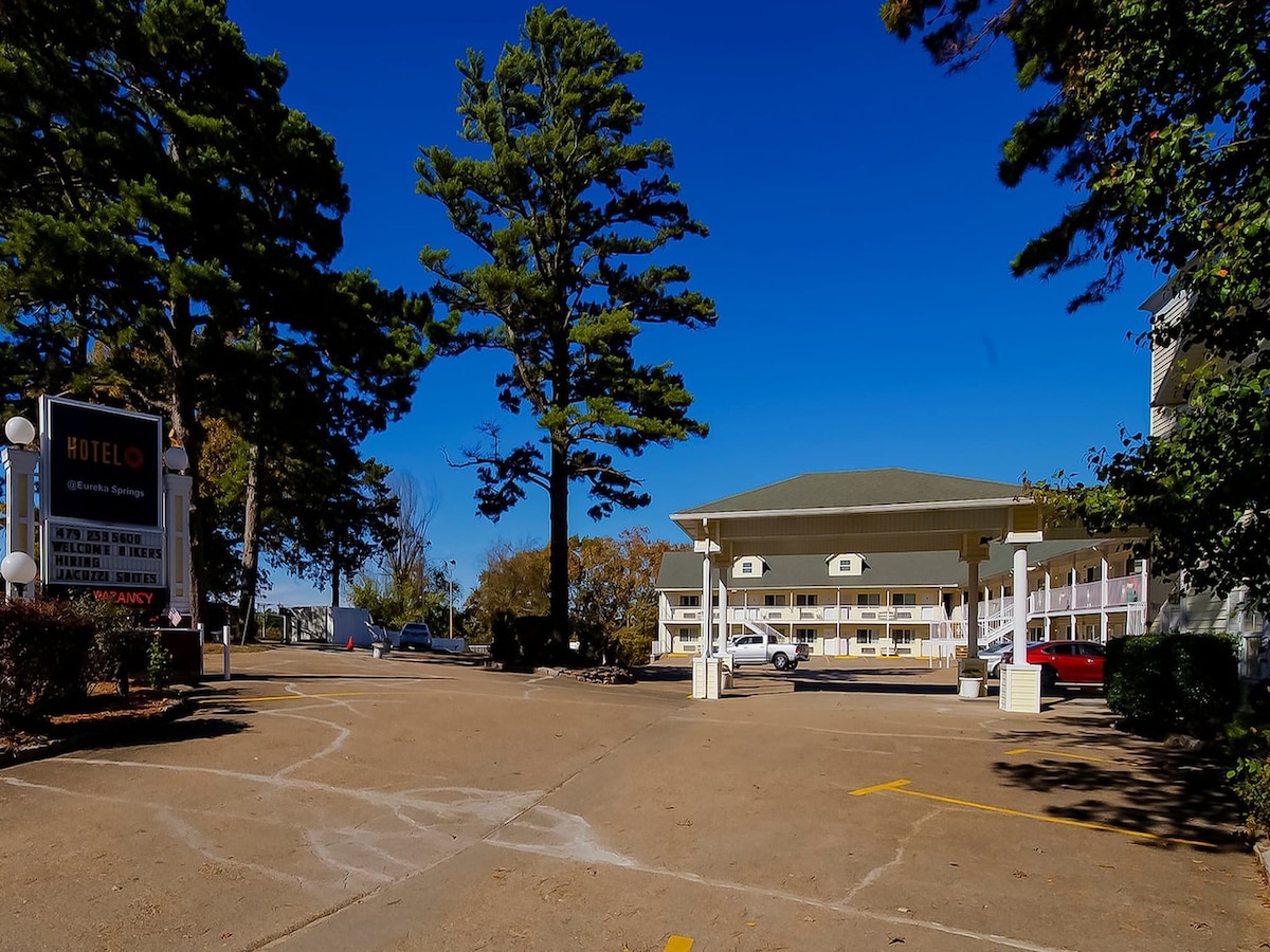 We can't wait to host you at the Woodsman Lodge in Eureka Springs, Arkansas! Escape to our suite, a newly renovated retreat for couples, friends, or solo travelers. Enjoy a luxurious king bed, leather couch, and modern rustic decor. Unwind in the brand-new bathroom, cozy up by the electric fireplace, or take in breathtaking sunsets from the covered deck. Just one mile from Historic Downtown Eureka, The Woodsman Lodge offers a pool, firepit, and outdoor seating for the perfect getaway!