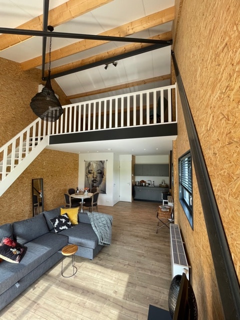 Nieuw B&B in Groningen Wat eerst gebruikt werd als loods, is omgetoverd tot B&b van liefst 75 m2 met uitstraling van een loft, aan de rand van Groningen. De nieuw gebouwde loods 14 ligt op 4 km afstand van de binnenstad. Loods 14 ligt tussen twee Groningse wateren, namelijk het Damsterdiep en het Eemskanaal. keuken met combi magnetron/oven en een badkamer. Daarnaast staat er in de B&b een (slaap) bank ,op de 1ste verdieping een 2 pers. bed. Kind tot 5 gratis Prijzen excl. ontbijt