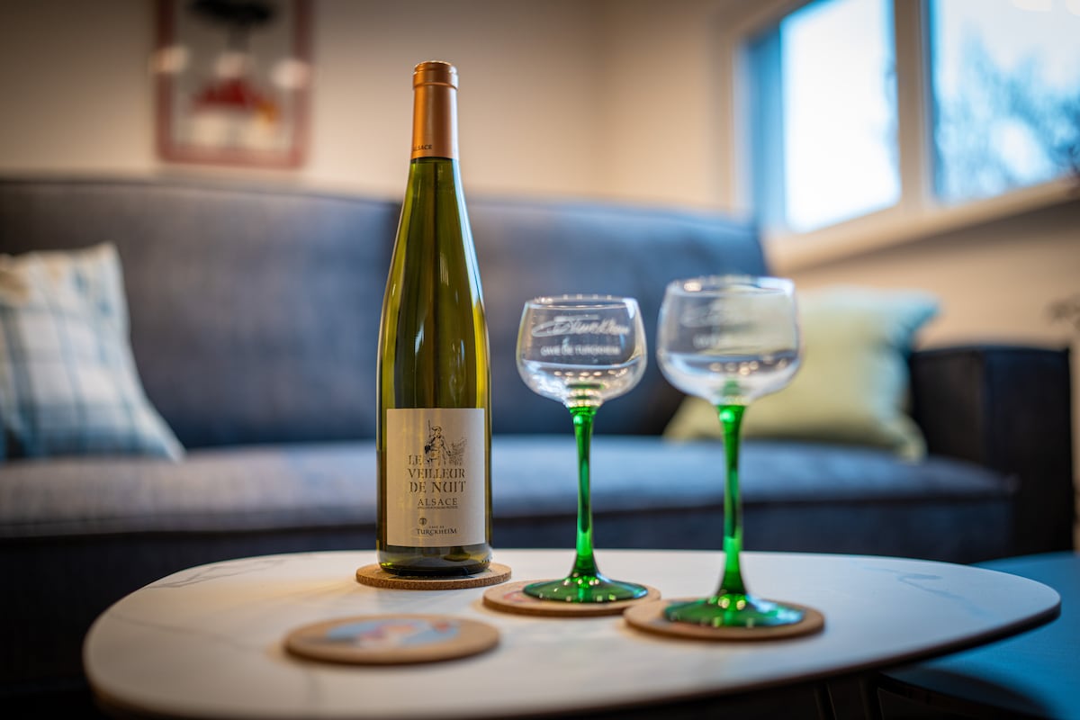 Charmant duplex dans notre séchoir à tabac reconvertie et aménagé en logement. Il dispose d’une chambre au rez-de-chaussée avec deux lits simples, d’une chambre climatisée avec un lit double à l’étage et d’une mezzanine avec deux lits simples. Profitez d’un espace confortable et lumineux avec une cuisine équipée ouverte. Notre village, entre Strasbourg et Colmar, est proche de l'Allemagne, à 10 Min d'Europa-Park, des nombreux marchés de Noël alsacien et du Haut-Koenigsbourg.