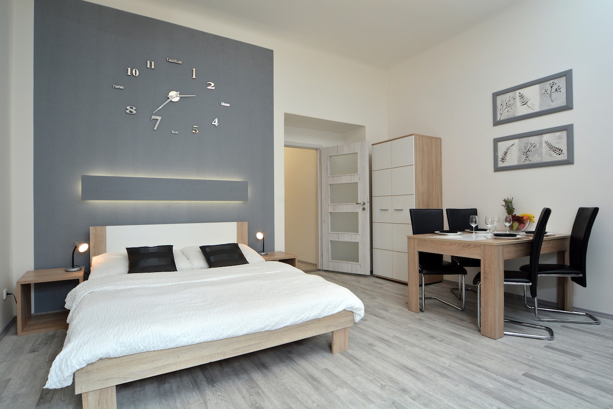 Welcome to your Bright & Spacious modern studio in Central Prague, only minutes away from Old Town & Wenceslas Square. Fully equipped in a residence with an elevator. Walk to all Main Tourist Attractions. 5 mins walk to VÁCLAVSKÉ NÁMĚSTÍ (WENCESLAS SQUARE) 10 mins to OLD TOWN, Prague ASTRONOMICAL CLOCK, DANCING HOUSE and CHARLES BRIDGE. Excellent public transport connections: Tram/metro/bus stops. Suitable for groups up to 3 people.