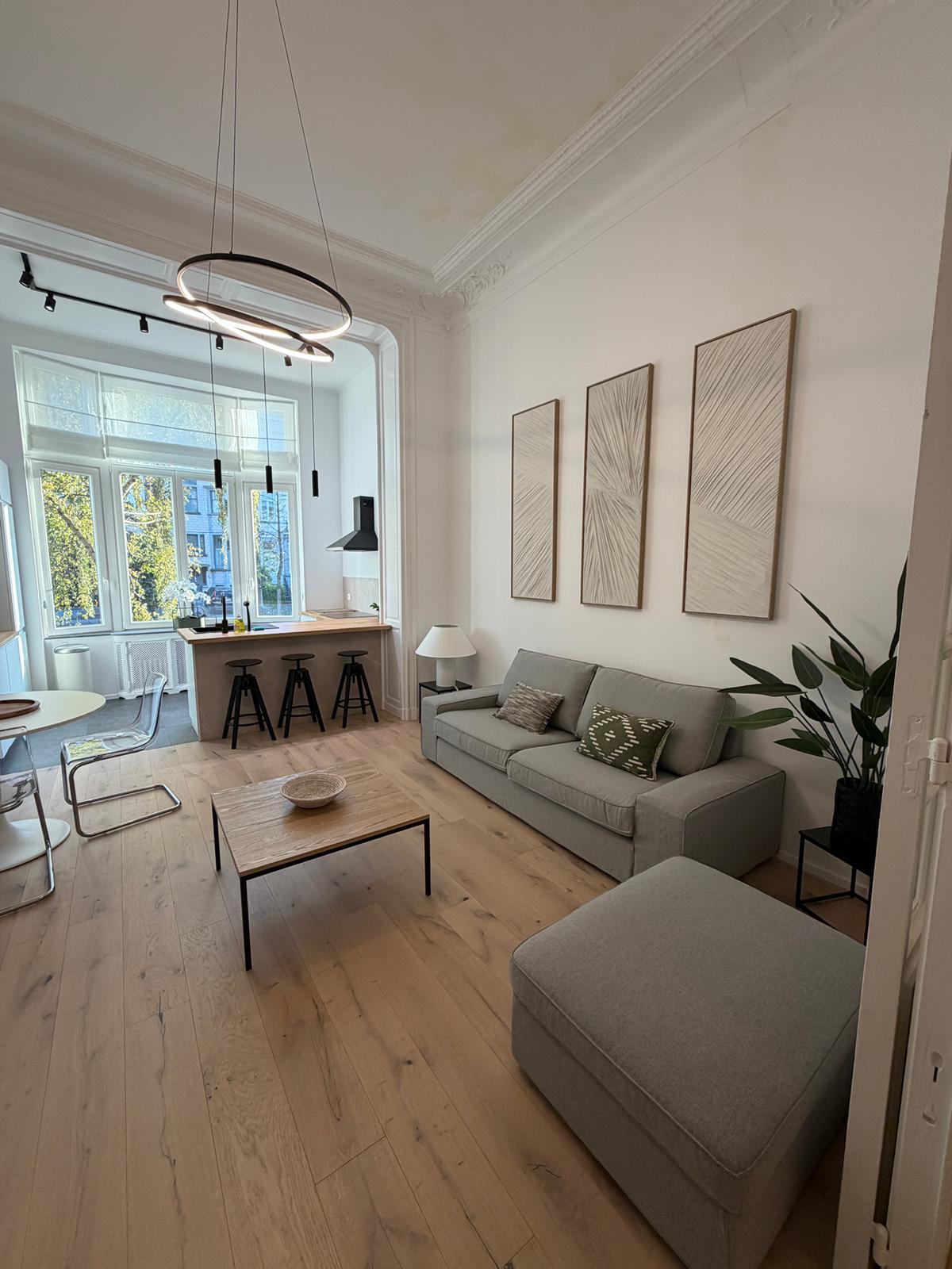 This huge and brand-new apartment, located in a chic neighborhood in Brussels, combines comfort and practicality. Spacious and bright, it’s designed to offer a modern and functional living experience. With high-quality amenities, a fully equipped kitchen, and optimized storage spaces, it meets all your needs. Ideally located, you're just steps away from shops, restaurants, and public transport, providing easy access to all the city's attractions. The perfect living space in Brussels!