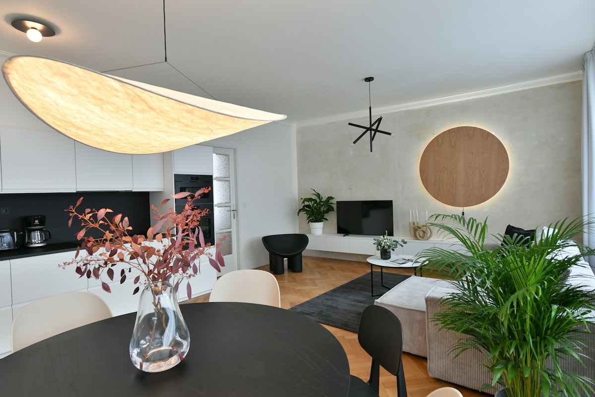 Spacious and elegant apartment (130 sq m), beautifully furnished with a nod to tradition. Generous living areas provide the perfect setting to unwind, recharge, or enjoy quality time with friends. Ideal for a couple, two pairs of friends, or a family of four. Bedrooms are equipped with air conditioning. However, if you're passionate about combating climate change, you can opt for the ceiling and floor fans available in every room. They ensure a refreshing stay, even on the warmest days.