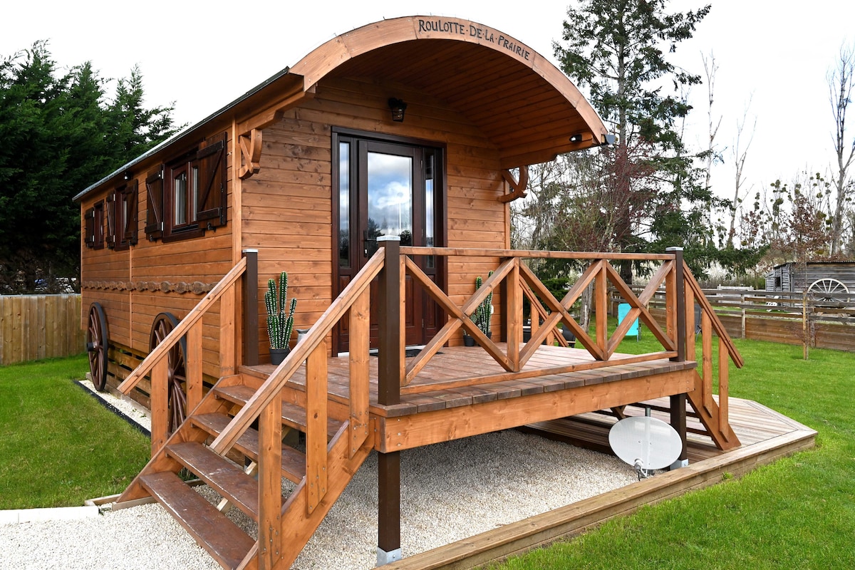 Venez vous ressourcer dans notre roulotte confortablement aménagée au milieu de notre pré, entourée de nos animaux de compagnie (poneys, mouton, paons, canards) située aux portes de Chambord. Avec son jardin clos et son aménagement extérieur agréable et confortable, c'est un lieu propice à la détente en famille et pour se retrouver au calme. Idéal pour les randonnées pédestres ou la Loire à vélo, la visite des châteaux,le zoo de Beauval,Center Parc, d'observer les animaux et le brame des cerfs.