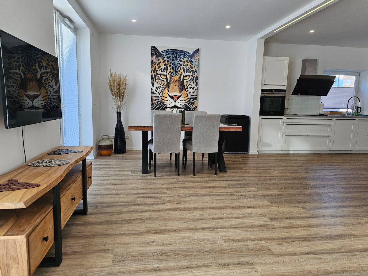 -Familienfreundliche Ausstattung in ruhiger Nebenstaße für bis zu 4 Personen - 5 Personen auf Anfrage. Bei Bedarf Babyreisebetten oder Zustellbett, Hochstuhl. -Für Senioren geeignet, da ebenerdig nur 2 Eingangsstufen. -Musikalische Künstlergäste dürfen proben Gesang u. Instrumente. -Für längere Aufenhalte gut geeignet, da komplette Küche mit Essplatz und Waschmaschine mit Trockner vorhanden, fragt hierfür nach Sonderpreisen.