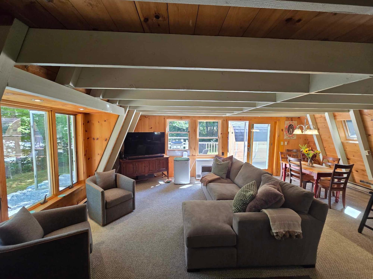Our GETAWAY-perfect place for relaxing and fun! It’s private but 1/2 mile to IGA and approx 1 mi to beautiful downtown Rangeley with great restaurants, bowling, arcade, darts and shuffleboard. Ltd access to snowmobile trails directly from the house. ATV is no longer allowed from our home. Trails can be accessed from IGA (park across the st., or Depot Rd (includes trailer parking) 3/4 mile from our home. Hiking and incredible scenery! Walking distance to Pickford Pub and mins o Mtn Star Estate.