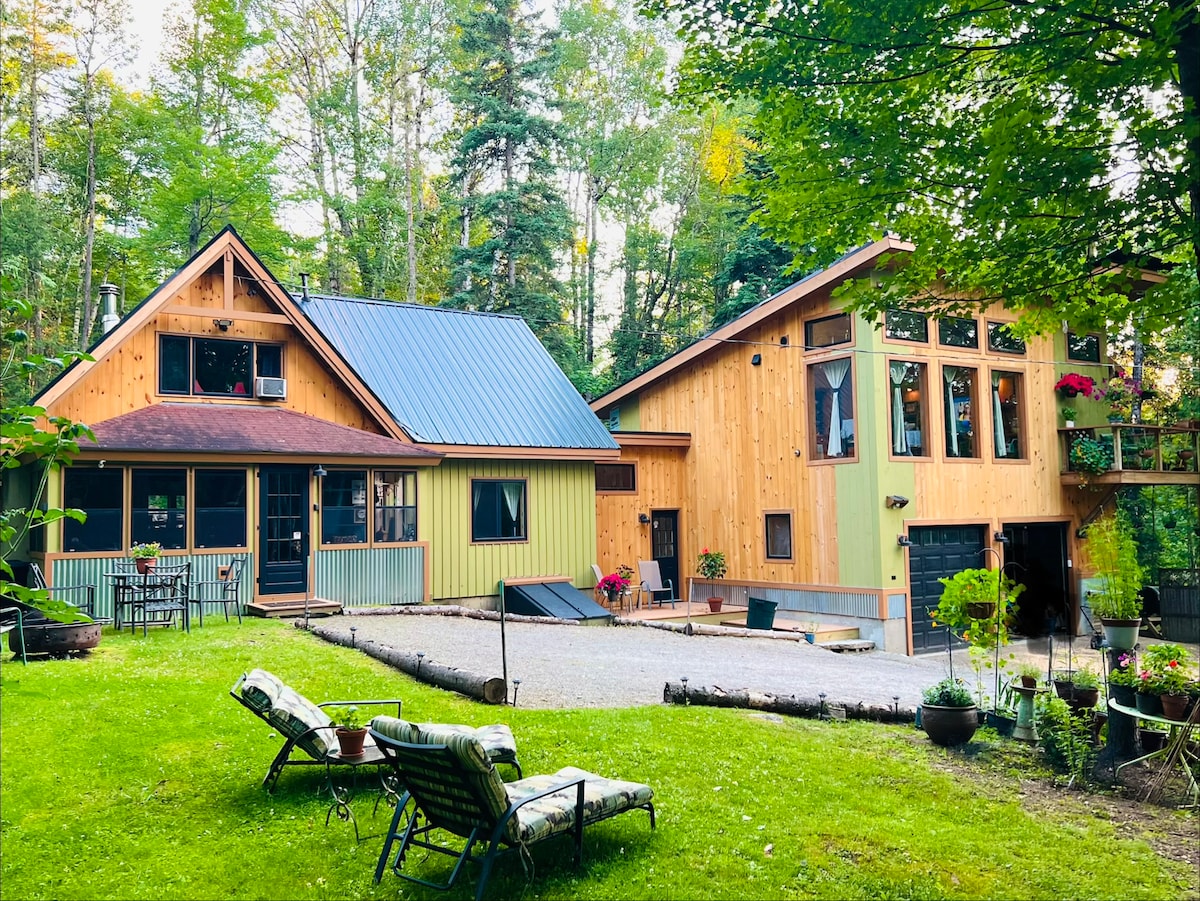 Just a short 15-20 minute drive from Sugarloaf and 3 minutes from historic downtown Kingfield, this chalet provides a peaceful, private respite after a busy day on the mountain. Our 2BR, 1BA eco-friendly chalet is tucked back from the road, with distant neighbors and fast WiFi. You can be surrounded by nature but only minutes from lovely restaurants, local shops, grocery store, gas station and tons of trails, rivers & lakes for snowshoeing, XC, snowmobiling, hiking, huts, MTB, kayaking & more.