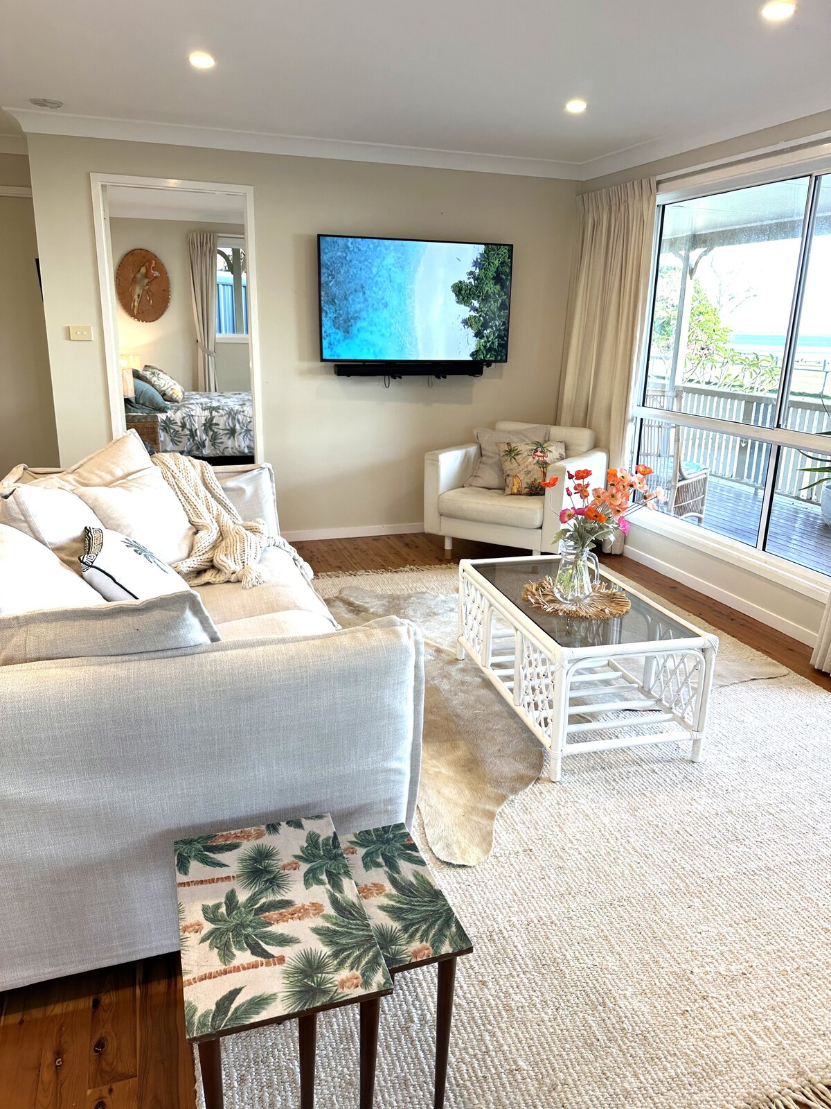 The Lazy Llama Evans Head is a seaside cottage. The perfect combination of location and style surrounded by lush tropical gardens and the sound of the ocean. The Lazy Llama is the idyllic getaway for couples, families or a group of friends. Hide your car keys away with cafes, shops and white sandy beaches all steps from your deck. Soak up the sun lazing around the pool, take in the sea breeze rocking in the hanging chair and enjoy the balmy evenings by the fire pit.