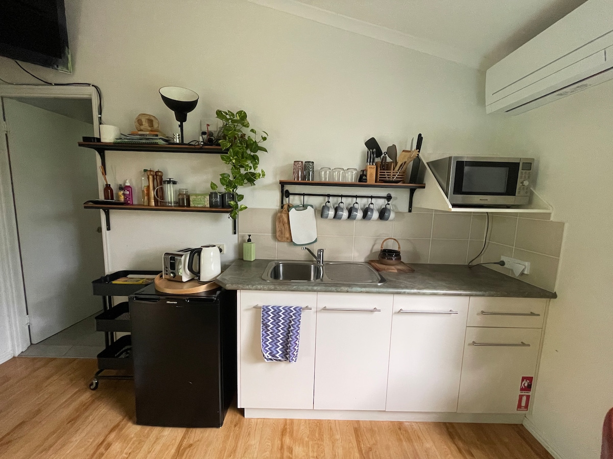Set in your own private yard amongst gum trees and citrus, with a chicken coup around the corner, this one bedroom cottage feels like a home away from home. With more amenities than a hotel, like portable induction cooktops, microwave oven, washing machine and real ground coffee our place can be your home while on holidays or passing through. Situated up a dirt road, amongst koala trees and on the river, in the small community of Rileys Hill, close to Evans Head.