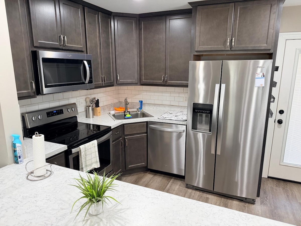 Stay at this peaceful and centrally located home with fenced yard. The house has been completely remodeled and is located 5 blocks from the University of Evansville and 7 minutes from downtown Evansville for concerts, shows and conventions. The house is located in a quiet safe neighborhood and is 15 minutes from anywhere in town. The house has 2 bedrooms, each with a queen bed, sleeping 4 total. One queen bed has an adjustable base to adjust head and legs in various positions for maximum comfort