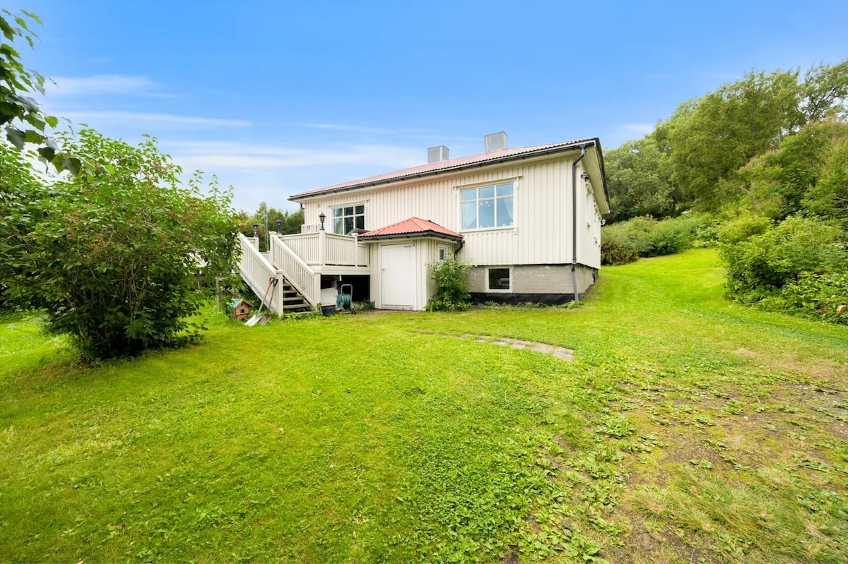 Slapp av sammen med hele familien på dette fredelige huset på et plan på Ankenes, kun 10min kjøretur fra Narvik sentrum. 3 soverom med til sammen 6 sengep.Fint uteareal med to verandaer. Nydelig utsikt mot Narvik havn og fjellene rundt. 5min gange til flott sandstrand. Butikk, restau rant og flotte turmuligheter i nærheten. Vaskerom med vaskemaskin og tørsketrommel, velutstyrt kjøkken med bla. kaffetrakter, mikro, komfyr, vaffeljern og vannkoker. Gratis WiFi, 5G-tilgang og tv og arbeidsplass.
