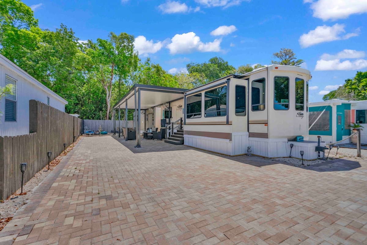 Extra large 40 feet long high ceiling RV with 4 slide outs. Great location 9 miles from Fort Myers Beach & 7 miles South of Downtown. 5 grocery stores within 1 mile Walk to Suncoast Arena, Barbara B Mann theater, restaurants & FSW College Private entrance 6ft fenced Patio Beach essentials King bed Walk in shower Sofa bed in living room Large fridge 2 Smart 4K TV Full kitchen, coffee maker. Washer & dryer Dual AC, weber grill 2 Parking spots 50 amp EV outlet & charger. 12 miles to SWFL Airport