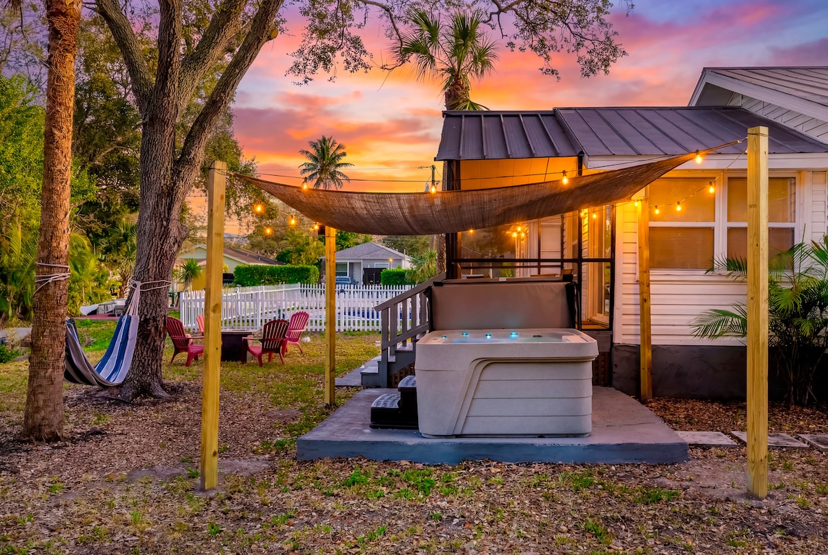 Take it easy at this tranquil getaway. Guests receive access to private cabins, outdoor bathroom, outdoor kitchen, tree house, koi pond, lounge, zen garden and a floating dock. It's a mix of modern amenities with a Bohemian edge. This unique artist’s retreat feels like a different world. The property was built by hand with influences of the travels of the owner always with sustainability in mind. This hideaway is the pure expression of glamping and a resort spa.