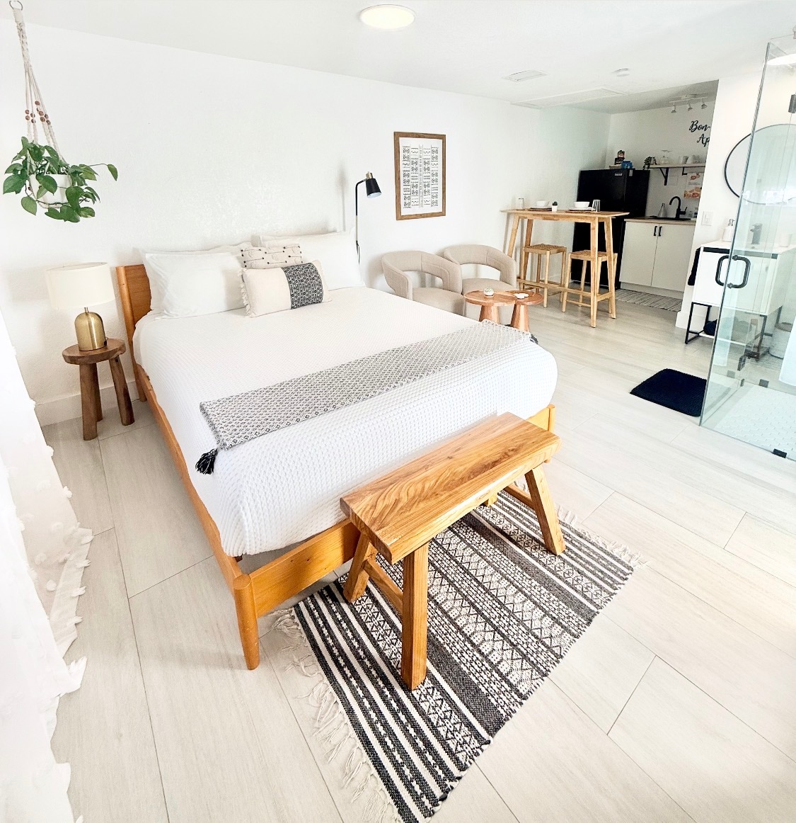 现代特大床套房•厨房•免费停车