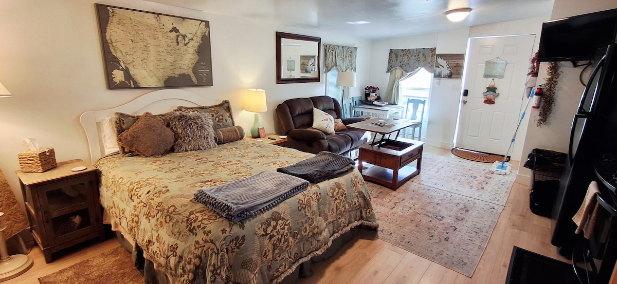 Gorgeous, remodeled studio on Flathead Lake with stunning waterfront views from every window. Brand new Casper bed!!! Relax in the private spa tub after a day of exploring Bigfork, Glacier Park, Swan River, or nearby towns like Kalispell and Lakeside. Sparkling clean, fully furnished, and perfect for a romantic escape or remote work getaway. Fast Wi-Fi, peaceful vibes, and unforgettable scenery—your Montana retreat awaits!