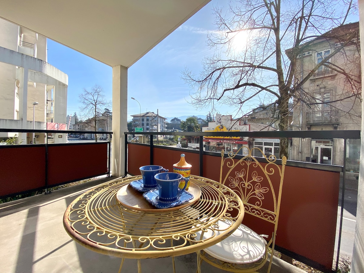 2 pièces cosy tout équipé, de 40m² au rez de chaussé d’une résidence très calme, à 10 minutes à pied du centre ville et de l’hôpital. On peut accueillir jusqu'à 4 personnes. Ideal pour un couple. Stationnement gratuit dans la rue, mais également box fermé en sous sol dans la résidence sans supplément Boulangerie et superette à 200 mètres Les thermes à 15 minutes à Pied Il ne faut que 10 mn en voiture pour aller se baigner dans le lac. Et 1/2 heure des domaines skiables des Portes du Soleil.
