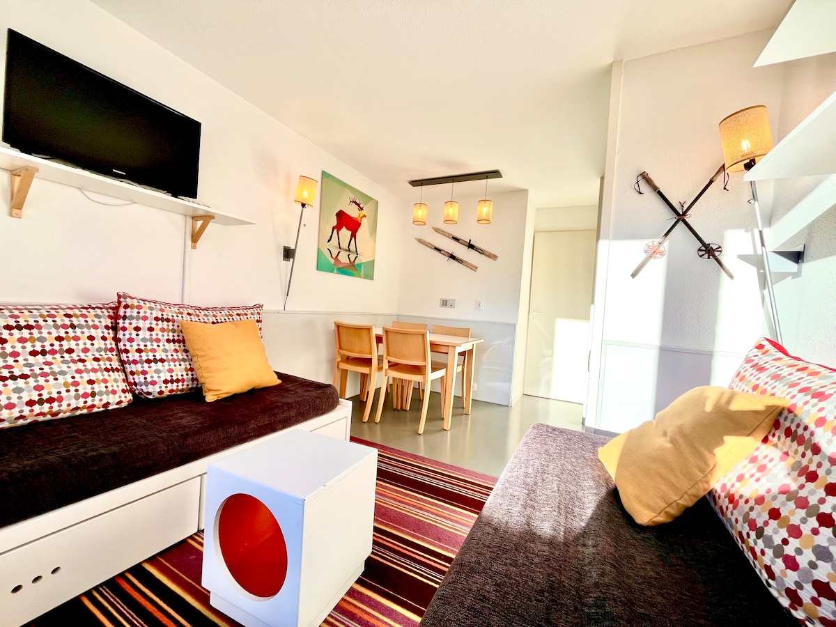 Laissez votre voiture au parking et profitez de la station à pieds ! Situé, à côté d’un SPA public, du Carrefour Montagne, les pistes de ski a 100m, ce nid de 30m2, au calme, plein sud, dispose d’une entrée/ski room, d’une petite chambre avec lit de 140 x190 cm, table de nuit, penderie, d'une cuisine avec machines à laver la vaisselle, lave-linge séchant, combi four-micro onde, machine Nespresso, un salon avec canapé, wifi, une smart télé avec Netflix et Orange, un balcon sud ouest, lits faits.