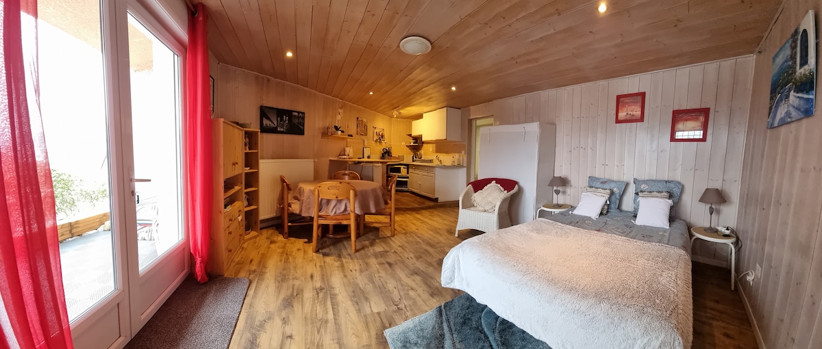 Studio entièrement meublé au Rez de chaussé d’une maison individuelle privée. L’entrée au studio est complètement indépendante et se fait directement. Grand Parking devant le studio . Terrasse individuelle, possibilité de profiter du jardin durant les beaux jours. Quartier calme , vue dégagée. La maison est en retrait de la route. Idéalement situé pour rayonner en haute Savoie ou dans les pays limitrophes. Petits stations familiales à 1/4h Grands stations de Ski à 15 km