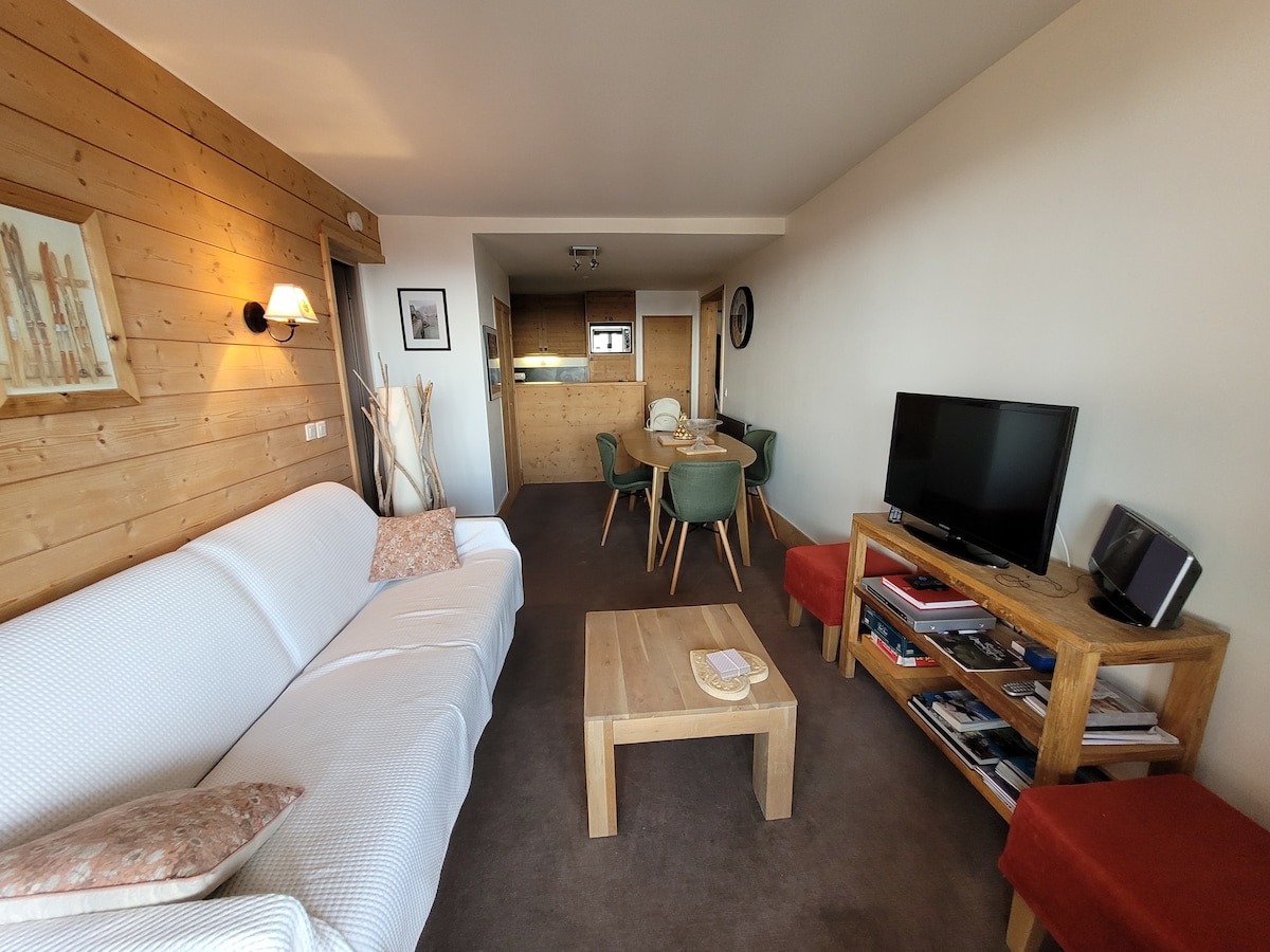 VUE MAGNIFIQUE ! Petit châlet de 45 m2 avec une jolie terrasse privée de 14 m2, bien ensoleillée au cœur d’un espace naturel. Logement bien situé au calme à 5/10 minutes à pied du centre du village et des remontées mécaniques, des commerces, de la piscine, patinoire, du parc des sports, des arrêts de bus (200 mètres). Grande baie vitrée, cuisine équipée, 2 chambres, salon canapé lit, salle de bain et WC, 1 place de parking. Location du linge en option payante sur réservation (draps serviettes).