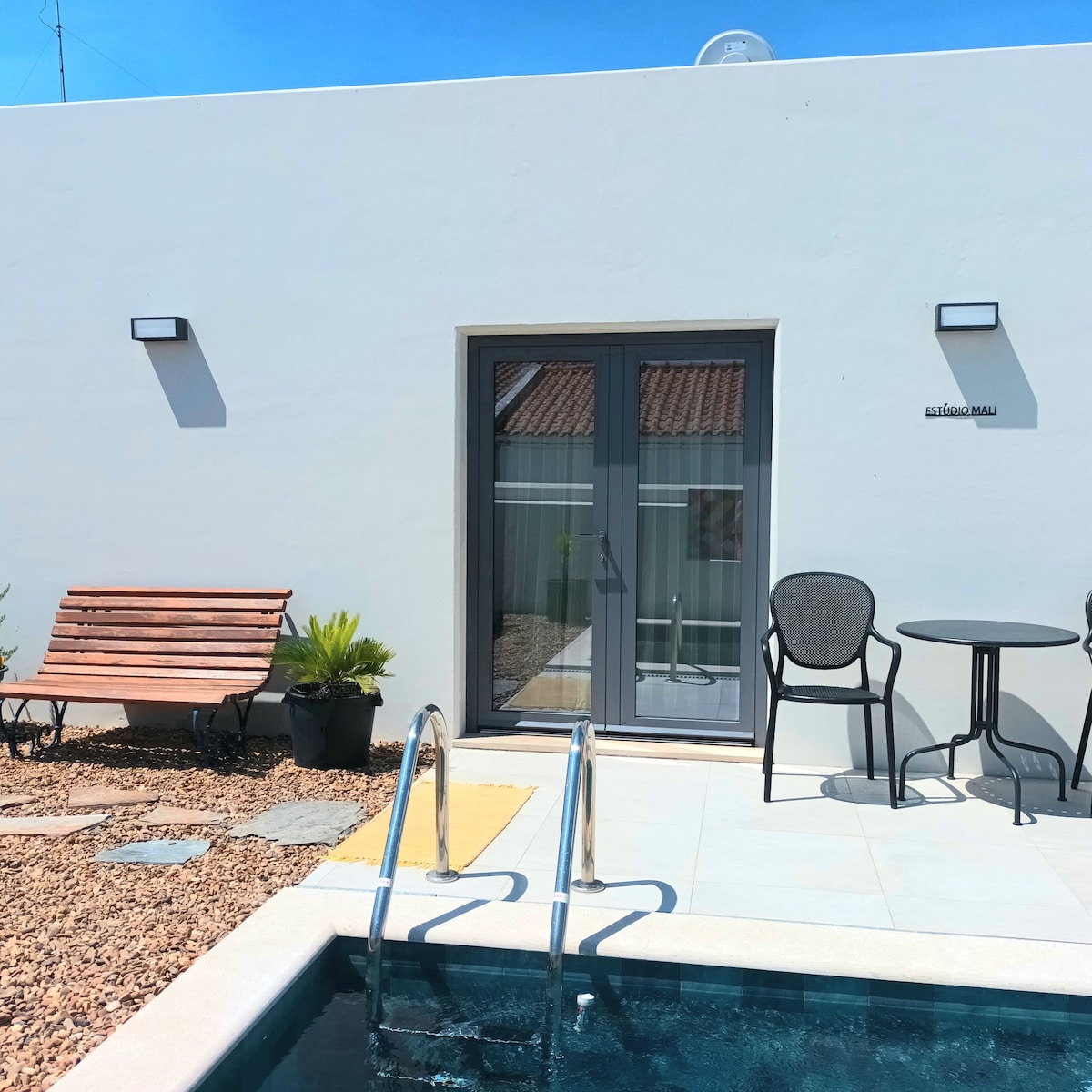 O Estúdio Mali é um espaço luminoso e acolhedor, perfeito para relaxar. Dispõe de kitchenette equipada com placa de indução, mini forno, frigorífico com congelador, máquina de café, Nespresso e torradeira. Conta ainda com cama de casal (160x200cm), casa de banho moderna com duche, ar condicionado e TV com Netflix. A piscina, partilhada apenas com outro estúdio e os anfitriões, garante um ambiente calmo e reservado