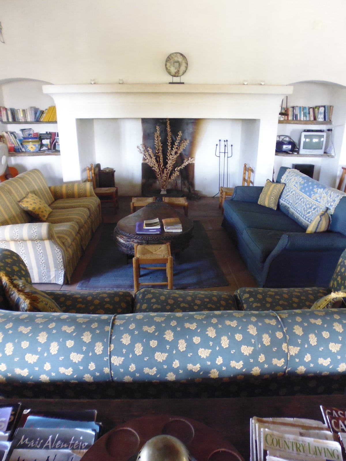 Sleeps 2 - 26 Four farmhouse cottages near historical Monsaraz and Lake Alqueva, set amongst ancient olive groves and vineyards, an oasis of palmtrees giving shade from the summer heat, or for sitting cosily around big open fireplaces in the winter SUITE AMARELA sleeps 2/3 in Suite with double bed and small single bed. 1 ensuite bathroom with shower, breakfast-maker unit (small fridge, tea/coffee/toast maker) For additional rooms there is a connection to CASA ANTIGA which has 2 bedrooms, 1 bathroom, Living/diningroom and a fully equipped kitchen. Outdoor dining terrace and bbq The Celeiro is a large communal room with tv, wifi, 2 toilets, books, games And a covered varanda with a panoramic view across ancient olive groves and vineyards to historical Monsaraz village on the hilltop