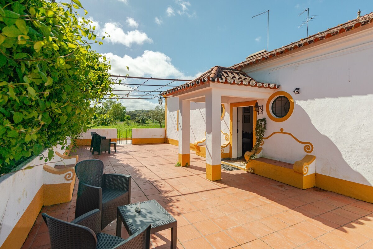 A place where waking up is accompanied by birdsong and the swaying of trees, airy and quiet, exuding tranquility. In the heart of the Alentejo, 90 minutes from the capital and three minutes from the center, surrounded by vineyards, this charming modern vintage-style village house offers magnificent views of the Alentejo plain, providing a peaceful and comfortable stay with access to cable channels and free Wi-Fi, bedroom and living room with air conditioning and wood-burning stove.